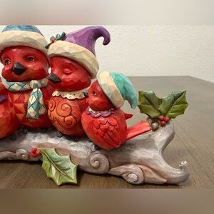 Celebrate the season with this charming red bird family figurine. Perfect for adding a touch of holiday cheer to your home decor.