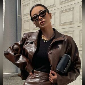 SINGLE BREAST PU CROPPED LEATHER JACKET