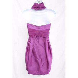 Feel stylish & gorgeous in this purple designer couture Sinha Stanic 2006 Runway dress with a ruched chiffon halter neck! Empire waistline with pleats in the skirt to add volume. Hidden back zipper. Unlined. ASO As seen on Brittany Murphy (RIP) & in ELLE on Keira Knightley.