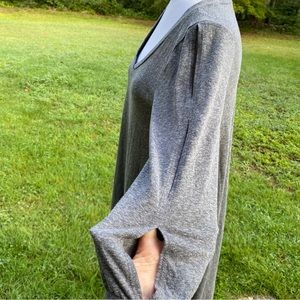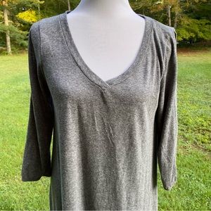 SINUOUS DRESS SHIFT TRAPEZE GRAY V-NECK CUT OUT 3/4 SLEEVES SIZE S USA
