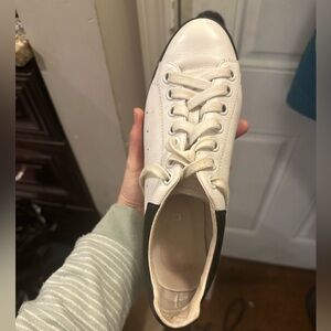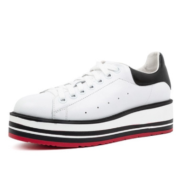 Elevate your style with these chic white and black platform sneakers. Perfect for any casual outing.