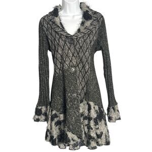 SIONI Art-to-Wear Fuzzy Knit Patchwork Cardigan Sweater Coat M