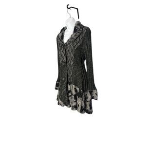 Sioni, Cardigan, Sweater Coat, Longline, Tunic, Patchwork, Mixed Media, Knit, Fuzzy, Eyelash, Shaggy, Black, Gray, Grey, Art to Wear, Art-to-Wear, Boho, Bohemian, Cozy, Winter, Fall, Layering, Whimsigoth, Cottagecore, Statement, Jacket, Medium, M, Cotton Blend.