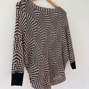 SIONI Cream & Black Lightweight Knit Dolman Batwing Sweater Size Small
