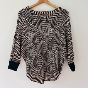 SIONI Cream & Black Lightweight Knit Dolman Batwing Sweater Size Small