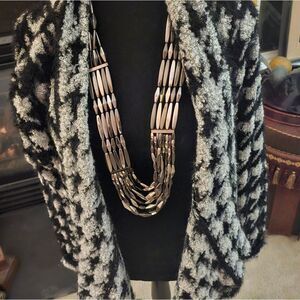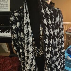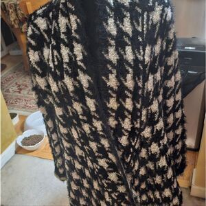 Warm, cozy and flattering, this on-trend sweater/coat is so eye catching! It features checkered eyelash type yarn. Worn a few times til my daughter moved south. EUC.
