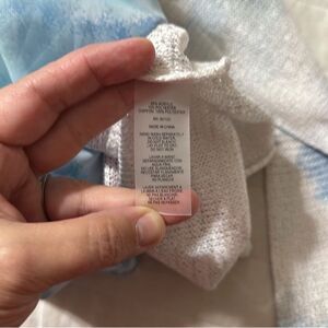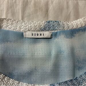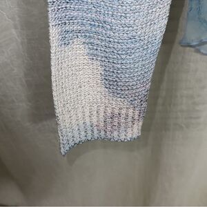 SIONI L White Blue Pink Cloud Floral Reverse Knit Sweater Blouse Pullover