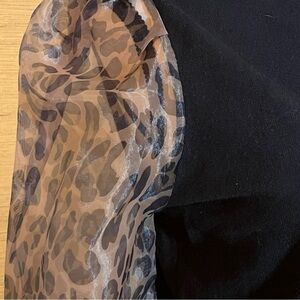 SIONI Sheer Leopard Print Puff Long Sleeve Black Mock Neck Sweater Size Medium