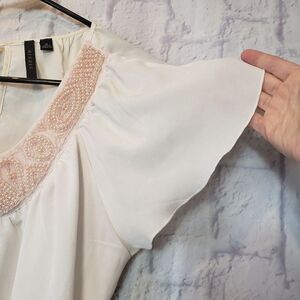 Semi-sheer Blouse with flutter cap sleeves, elaborately Embellished neckline.