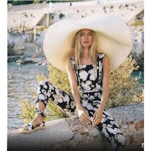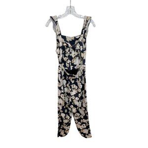 SIR. Bellagio Linen Black White Floral Sleeveless Wide Leg Jumpsuit with Ruffle Straps - Size 4
