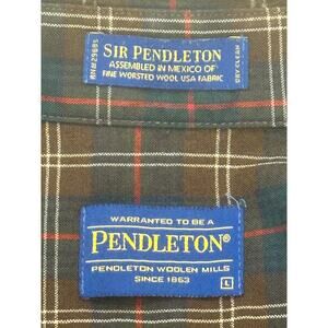Sir Pendleton Wool Shirt! The ultimate in comfort and style with this Sir Pendleton shirt! Crafted from 100% Worsted Wool in a Men's Size Large, this long sleeve plaid shirt is perfect for adding a touch of classic charm to any outfit. Featuring a button-down collar, single pocket and a timeless design, it's both functional and fashionable. This shirt is in excellent condition and appears that it was worn very little or not at all. A great looking shirt and a classic wardrobe essential! # 1722