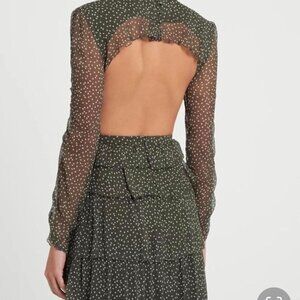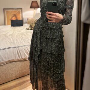 I’m selling my Sir The Label “Isabella” Polka Dot Tiered Ruffle Dress in green silk. Though I’ve owned it for a few years, it’s been gently worn on just a few occasions, and remains in very good condition, with only minimal signs of light wear not noticeable when worn.