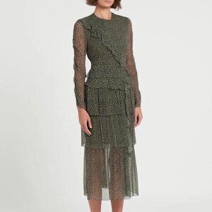 SIR The Label “Isabella” Polka Dot Tiered Ruffle Dress – Green Silk (Very Good)