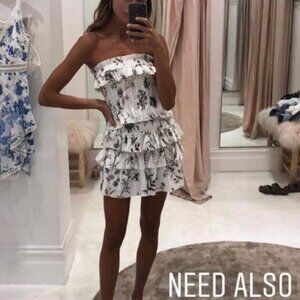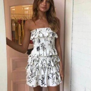 SIR. The Label Marielle Ruffle Floral Preppy Classic Linen Skirt Sz 0 (2)