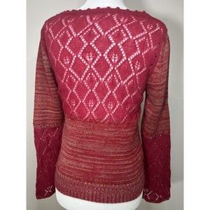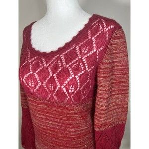 SISLEY Red Scoop Neck Sz Small Crochet Long Sleeve Women's Sweater