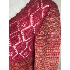 Sisley Size Small Red Scoop Neck Crochet Long Sleeve Women's Sweater.