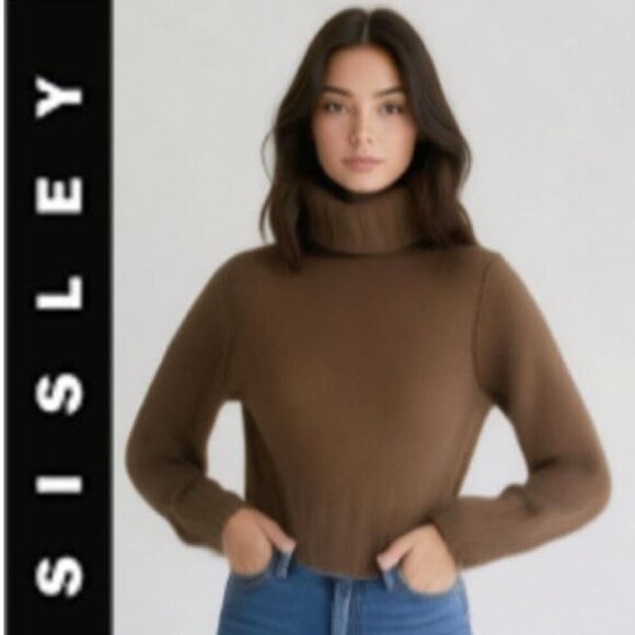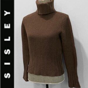 Sisley women’s Brown Wool Angora Turtleneck Chunky Sweater