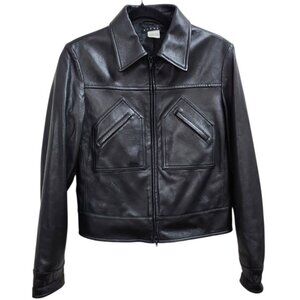 SISLEY Women’s Black Leather Moto Jacket Zip Front Diagonal Pockets Classic 44