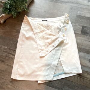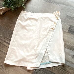 SISLY Asymmetric Pencil Skirt with Buttons, Soft White w/ Tonal Pinstripes