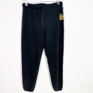 SISSTREVOLUTION BLACK ELASTIC WAIST JOGGER PANTS YELLOW SUN GRAPHIC WOMENS LARGE