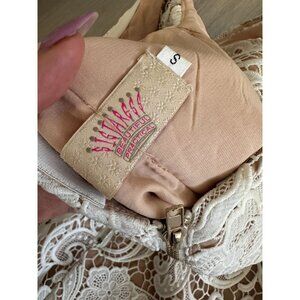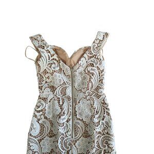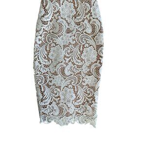 SISTARESS White Lace Nude Lined MIDI Weddjng Cocktail Dress Size Small
