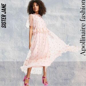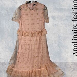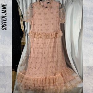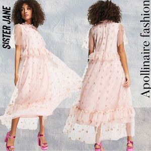 SISTER JANE SOUVENIR HEARTS MIDI DRESS IN VEILED ROSE PINK LARGE