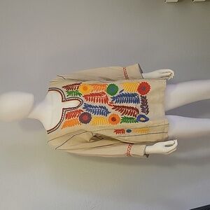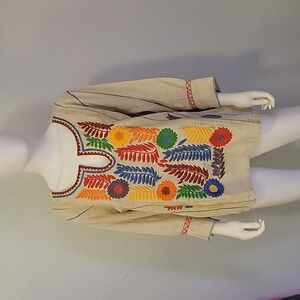 SISTER MARY Gloria Mexican Floral Embroidered Linen Fiesta Festival Tunic