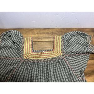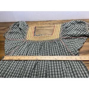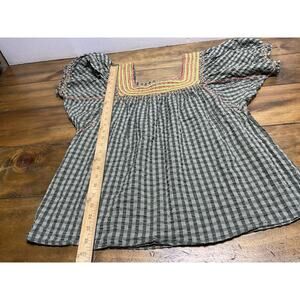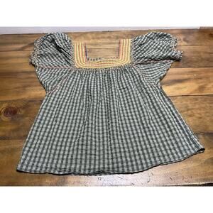 SISTER MARY Size Large Green Plaid Embroidered Puff Sleeve Tunic Blouse Top