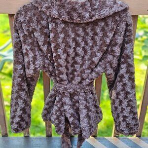 This lightweight, super soft, rose pattern faux fur jacket will make a beautiful addition to your wardrobe.