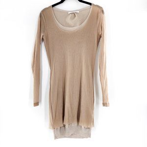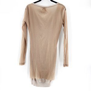 SISTE'S Nude Long Sleeve Scoop Neck Mesh Fitted Dress