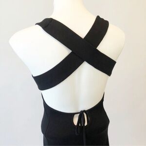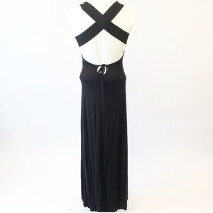 SITA Black Criss Cross Backless Maxi Dress Modal Spandex Tie Accent Medium