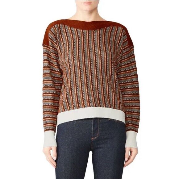 SITA MURT Sweater Womens 38 US 6 Brown Mixed Stripe Pullover Cotton Wool Blend