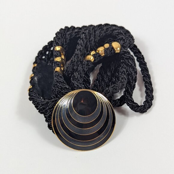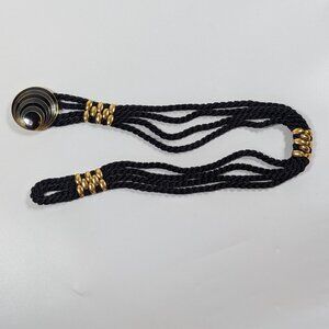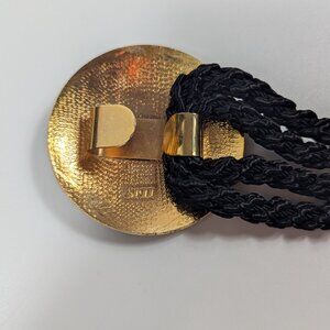 SITI Cloisonne Round Black & Blue Belt Buckle & Black Braided Cord Belt Vintage