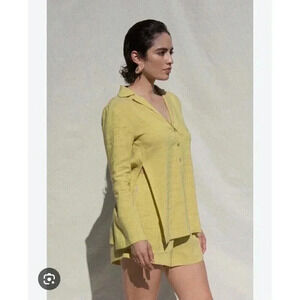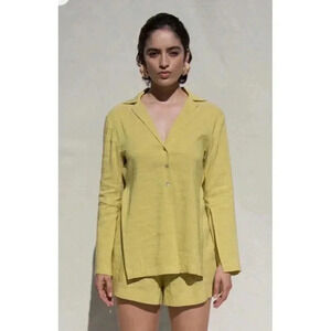SIWULA All Summer Long Open Neck Line Long Sleeve Effortless Chic Linen Top Sz L