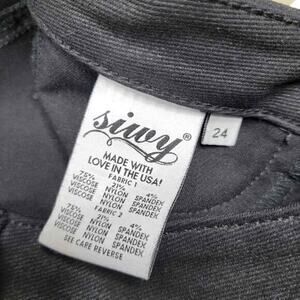 SIWY Hannah Black Jeans Right or Wrong Size 24. Faux front pockets. Waxed coated front panels. Stretchy Material. Skinny jeans. Size 24. Excellent Used Condition. 75% Viscose, 21% Nylon, 4% Spandex.