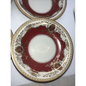 SIX Meito MANDARIN Maroon Red Gold Ivory RIMMED BERRY BOWLS Occ. Japan PERFECT!