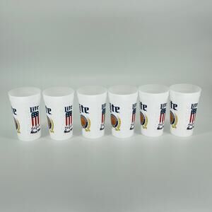 SIX Reusable White Miller Lite Miller Time American Flag Plastic Cups - NWT