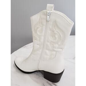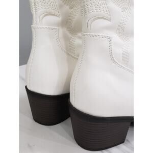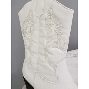 SIZE 10 Ankle Boots Western Cowgirl Low Chunky Block Heel Pointed Toe Boot WHITE