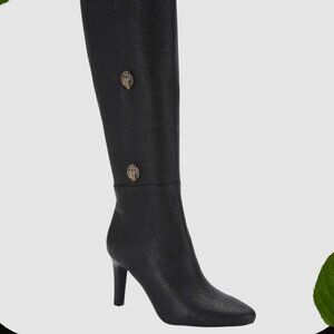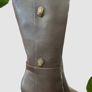 For the Kurt Geiger Lover... Signature crystal-encrusted eagle heads scale up the side panel of a richly textured brown leather boot balanced by a slender toe and tapered heel. Made of leather upper and synthetic and textile lining with 3 3/4 heel and 16" shaft and 15" calf circumference. NEW without box and store in my clothing boutique.