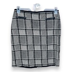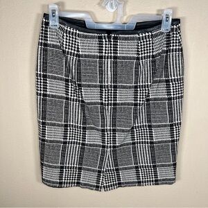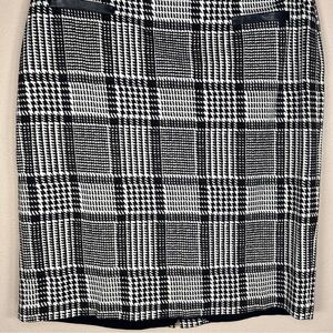 SIZE 10 PETITE TALBOTS BLACK WHITE HOUNDSTOOTH PLAID PENCIL SKIRT LINED RETRO