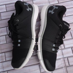 SIZE 12. UNDER ARMOUR STRIVE 7 1295778-001 men's black lace up running sneakers shoes lightweight and have synthetic uppers with engineered mesh for amazing breathability and a sleek fit and feel so comfortable around foot. Comfortable and Supportive Collar. From a smoke-free home. Worn once. Good preowned condition. Clean inside and out. Please review the pictures carefully for details, buyers receive exact item shown.