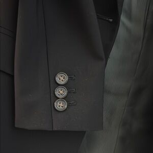 Elevate your style with this sleek black blazer from Banana Republic. Perfect for any formal occasion, this blazer offers a sophisticated look with its classic design.