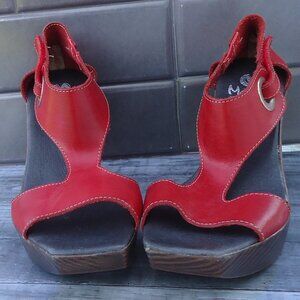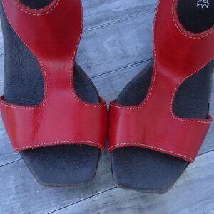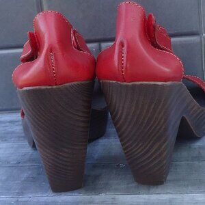 SIZE 38. Marila women's red leather sandals. Platform cone shaped heel sandals. Gorgeous cone shaped heel which gives these a vintage feel.
