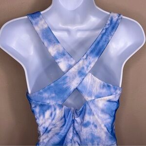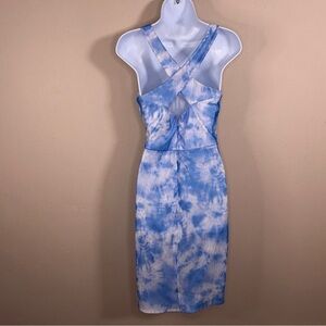 SIZE 4 GUESS SLEEVELESS DRESS BLUE WHITE CLOUD LOOK SHIMMER EVENT WEDDING