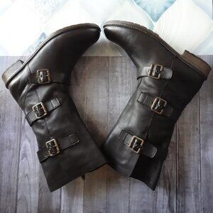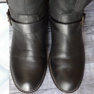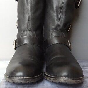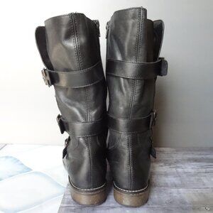 SIZE 40. Remonte Dorndorf black leather boots. Leather riding boot with buckles. Flannel inside. Please note: size is European. Slip-on styling. From a smoke-free home. Clean inside and out. Good preowned condition. Please zoom in all pictures for details and condition. Item in pictures is the exact item you are purchasing.