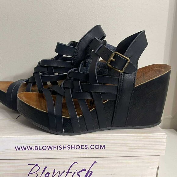 SIZE 7- BLOWFISH MALIBU BLACK STRAP WEDGES