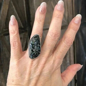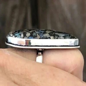 Gorgeous handcrafted ring set in 925 sterling silver overlay. Bundle and save! I ship fast!