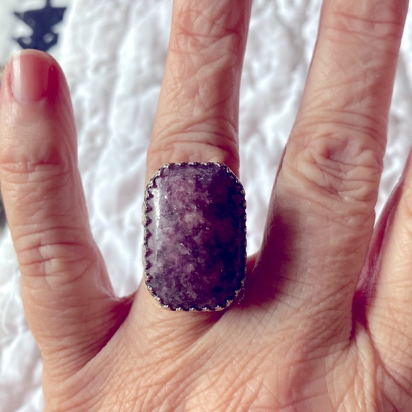 SIZE 7 SILVER AND LEPIDOLITE RING