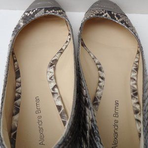 SIZE 8. ALEXANDRE BIRMAN genuine python snake leather flat shoes. They are made of luxurious python skins! Rounded metallic cap toe. Leather insole, lining and sole. Heel is less than 3/4 of an inch. Made in Brazil. Note: Alexandre Birman shoes run small. Please order a half size up. Worn twice. Good pre owned condition. Clean inside and out and comes from a smoke free home. Please review all photos carefully to judge condition prior to purchasing. Item In Pictures Is The Exact Item You Are Purchasing.