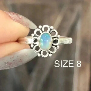 SIZE 8 Authentic Ethiopian Opal Solid 925 Sterling Silver Ring